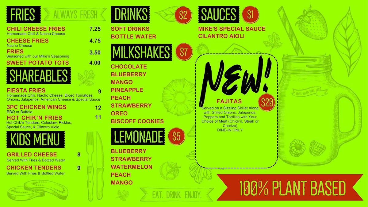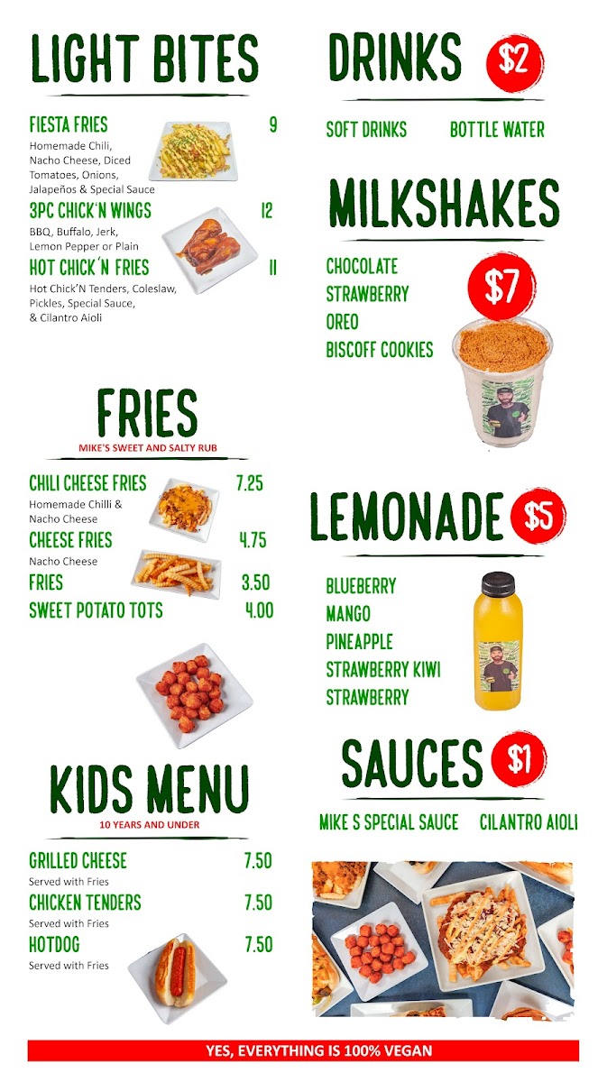 Welcome to Mike's Vegan Grill, a vibrant culinary destination in Charlotte that transforms the vegan dining experience. Nestled at 440 E McCullough Dr, this grill is not just a restaurant; it’s a celebration of flavor and creativity. The menu presents an array of tantalizing options, from Fiesta Fries—topped with homemade chili, nacho cheese, and jalapeños—to Chick'n Wings that deliver the perfect BBQ or buffalo kick.